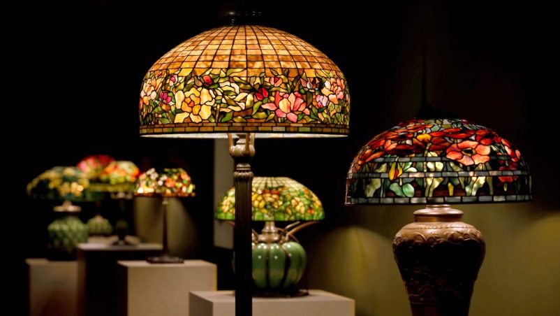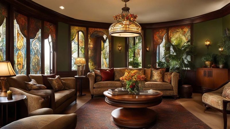 Một trong những biểu tượng nội thất tiêu biểu của Art Nouveau chính là đèn Tiffany – được ghép từ các mảnh thủy tinh màu mang hình ảnh thiên nhiên sống động, kết hợp khung kim loại uốn cong đầy duyên dáng.