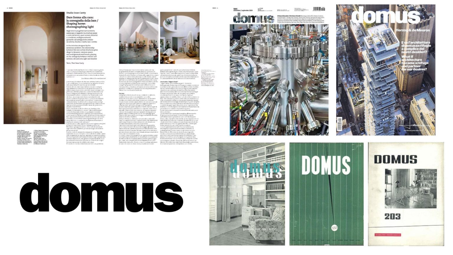 Xuất bản từ năm 1928 tại Milan, Domus là một trong những biểu tượng toàn cầu về kiến trúc, nghệ thuật ứng dụng và thiết kế công nghiệp. Với 11 số mỗi năm, tạp chí liên tục mở rộng phạm vi từ nội thất đến quy hoạch đô thị.